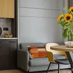 There are comforts like ironing facilities, as well as a TV featured in a balcony and a dressing area for guests' maximum convenience. The apartment is also furnished with a sofa set. The bathrooms offer a walk-in shower and a separate toilet. Furthermore, hair dryers and bath sheets is available.
